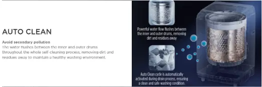 - Auto Clean – Keeps the drum fresh and residue-free.