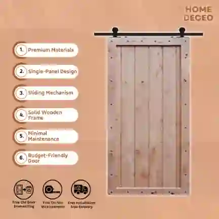 - Single Panel Design: Simple, classic barn door style.